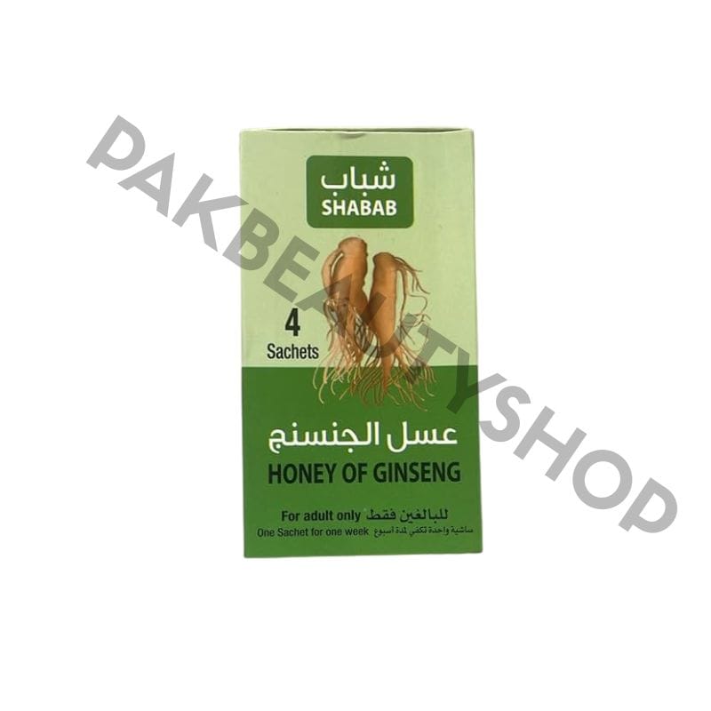 Find the best price for Imported Shabab Honey of Ginseng 4-Sachets (40g) in Pakistan. Revitalize energy, enhance immunity, & enjoy pure wellness. Order now across Karachi, Lahore & Islamabad.